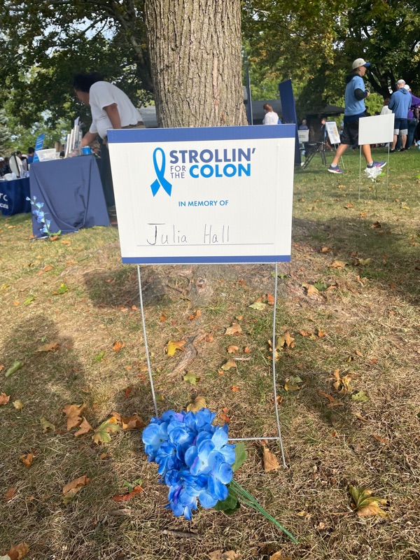 Today in Rochester New York my niece Katie ran a 5 K in support of colon cancer. She ran 5 k in just 34:20, then her two children ran a kids fun run. They all did this in honor of my daughter Julia!! We are all raising awareness for early detection as well as research and prevention.