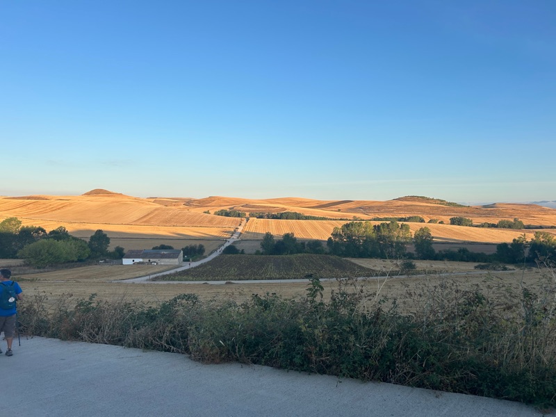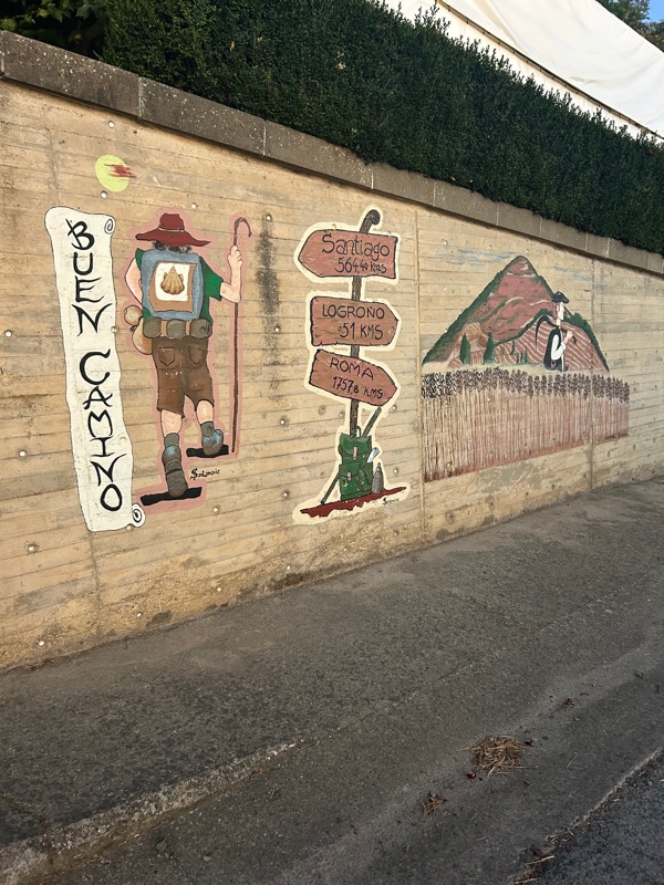 We left early again today to beat the heat. Not that we are complaining as we have enjoyed sunshine every day on the Camino but we knew today we would have very little cover of trees. We hit the road at around 6 am. Just as the sun was rising we entered the town of Azofra where we had one of the best glasses of fresh squeezed orange juice! We also enjoyed a tortilla and of course cafe con leche.