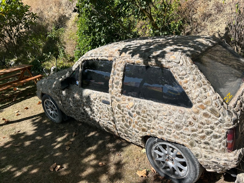 This BMW is at our hostel covered with stones, not sure if it runs🤪.