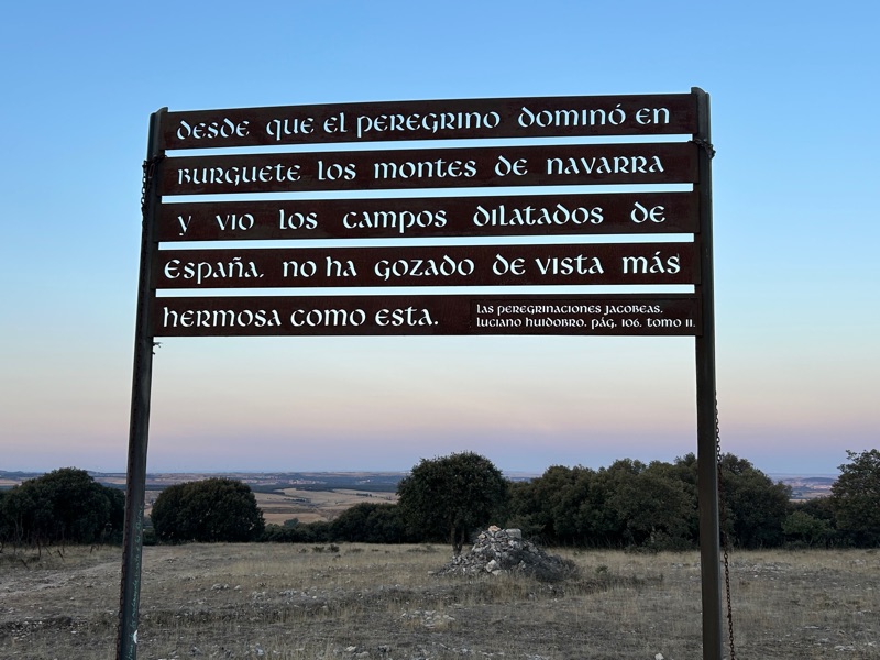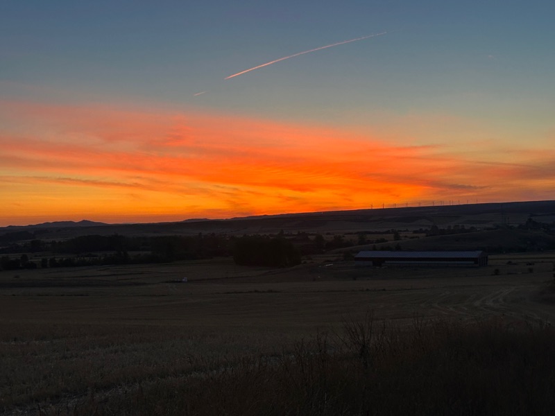 We left Atapuerca today just before dawn so we could see the sunrise. It was spectacular. The hike out of town was quite treacherous for the first 2.5 km until we reached the Matagrande ridge of the Sierra de Atapuerca.