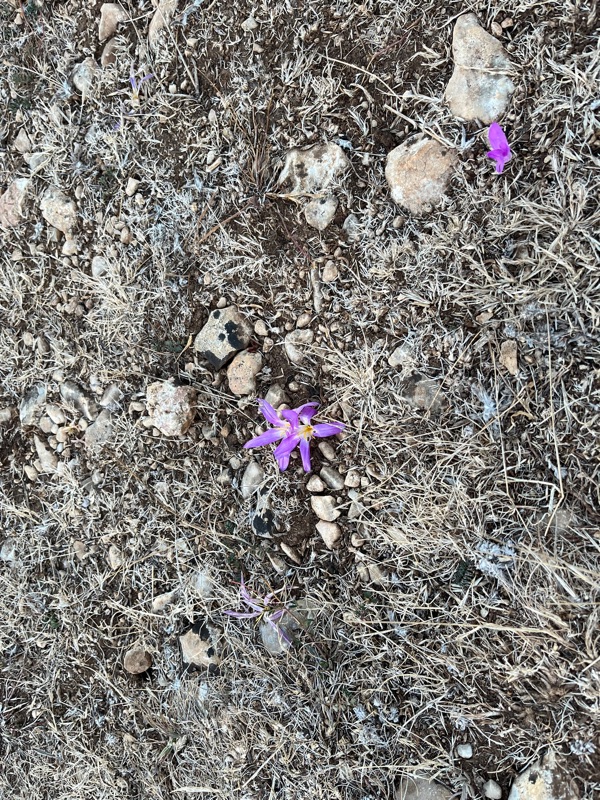 Crocuses growing in the rocks on the hillside, in España they bloom in the fall.