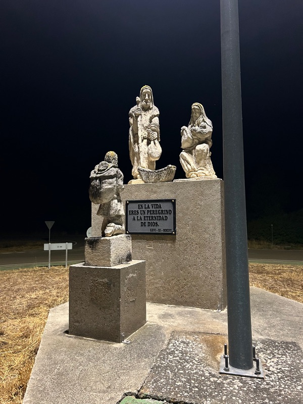 We left very early today but were still able to enjoy a few beautiful sculptures on our way out of Carrion. It was only 45 degrees so we were bundled up, headlamps were needed for our first two hours. I couldn’t resist stopping and Shutting my light so I could see the beautiful night sky once we were away from the city lights. Just gorgeous!