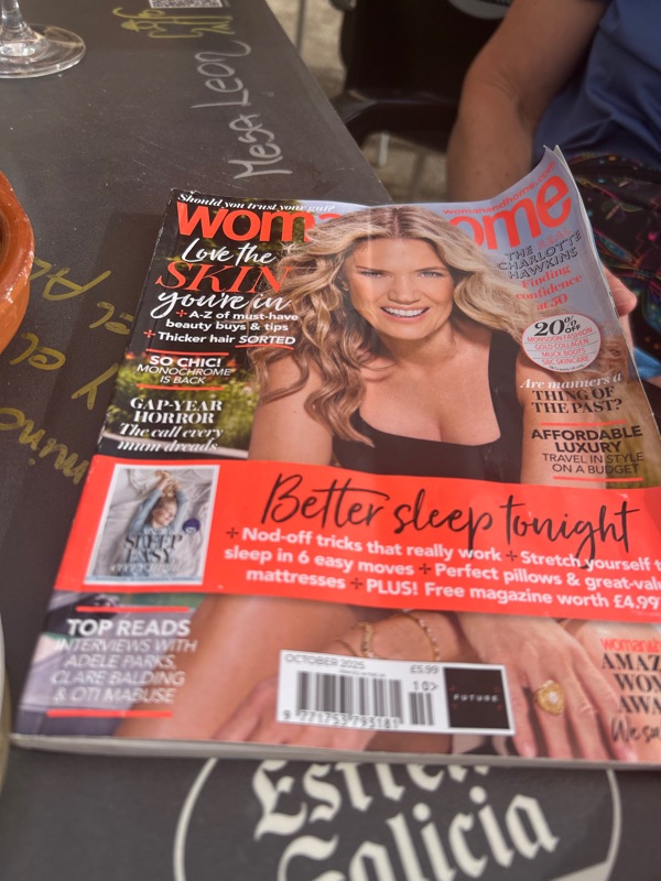 side bar- A woman from Ireland just shared a fashion magazine for us to read tonight, there is an article on how to get better sleep which we both need!