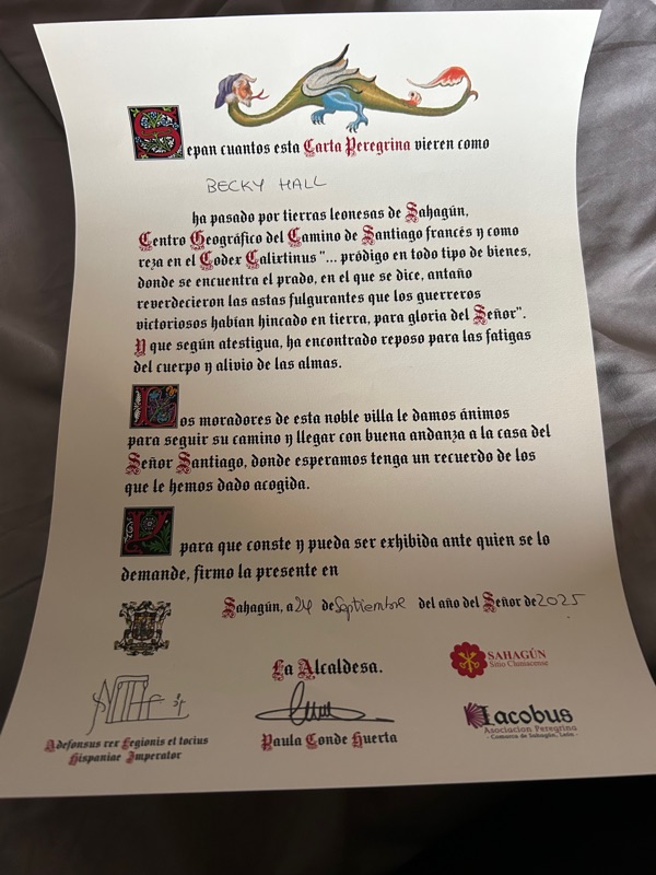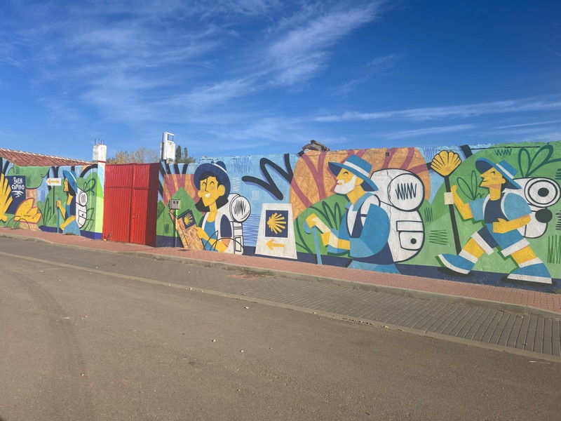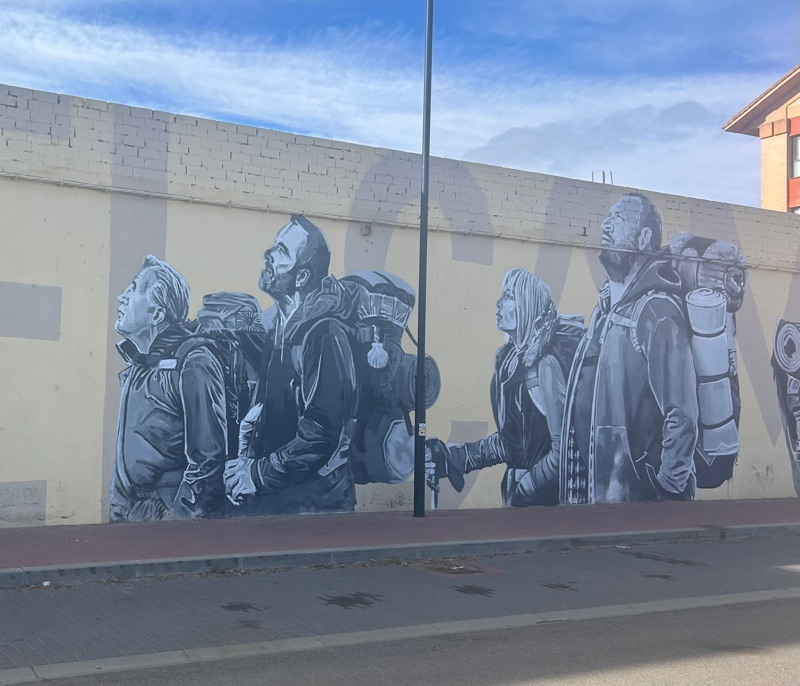Today was a short day and we were excited to get our half way certification. As we entered town there was a mural depicting the cast of the movie “The Way “