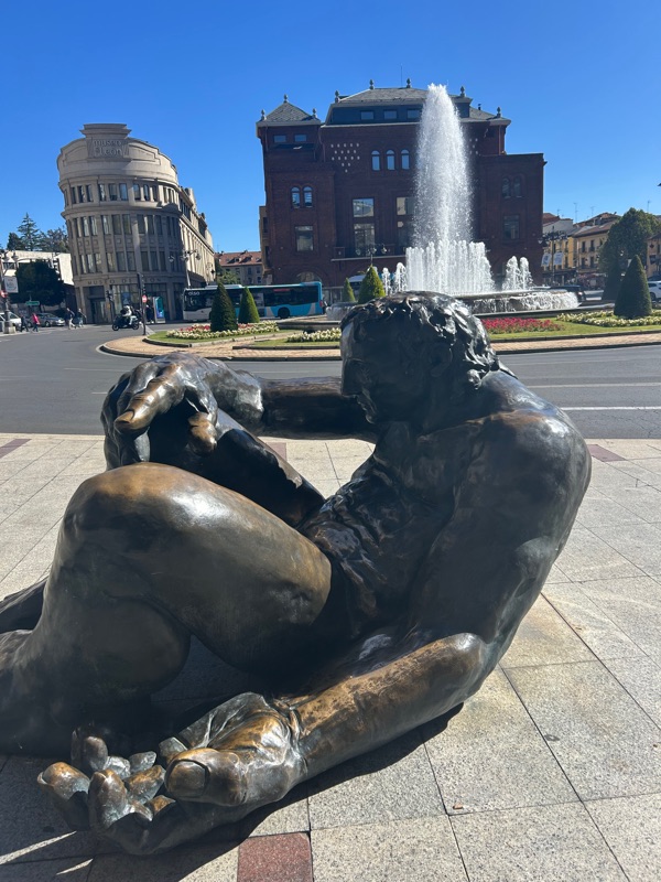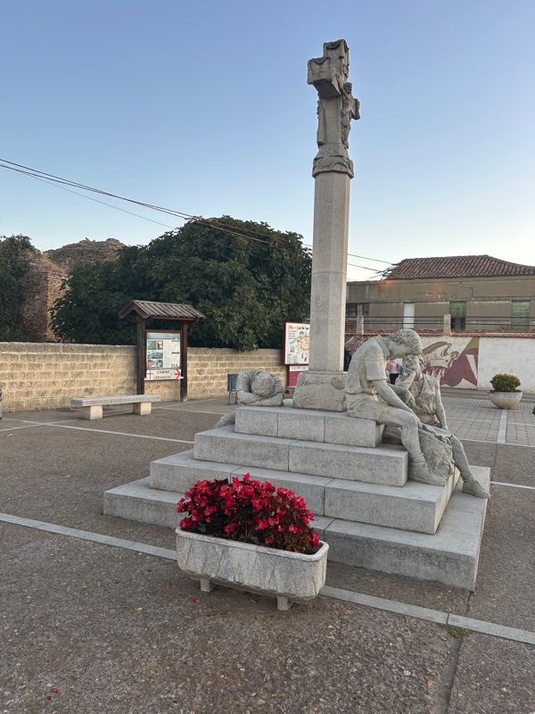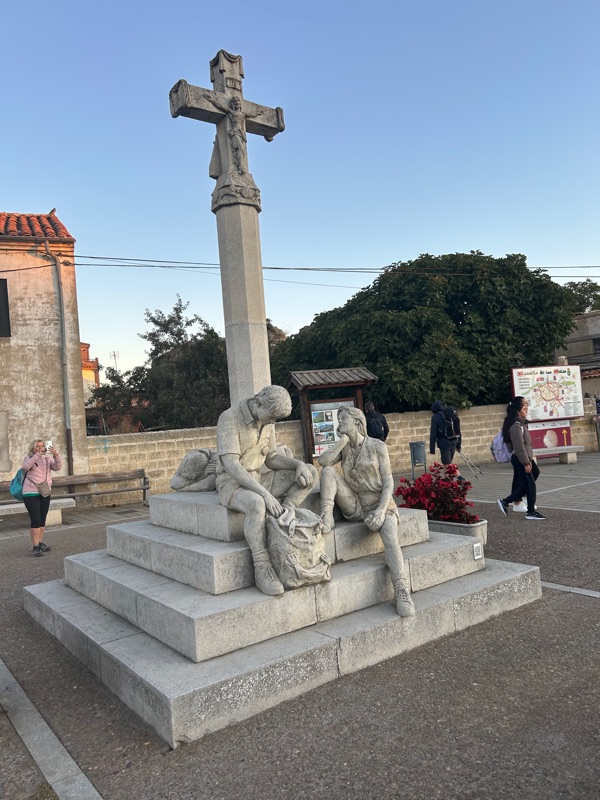 This beautiful monument depicting tired pilgrims was so “spot on” for us. We are ready for our rest day on Leon.