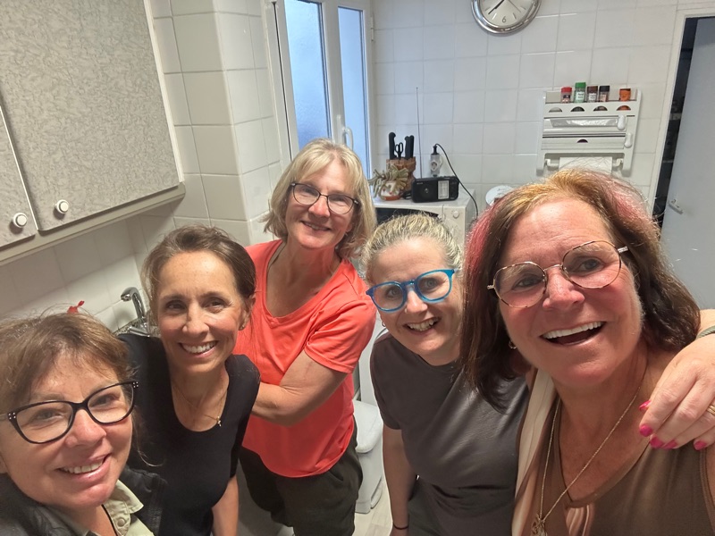 Doing dishes and cleaning up after dinner. Left to right : Aurelia, Deb, Amy, Sandra, and Becky. Photo is missing Doug and Elena as they wanted to get to mass at 7:30!