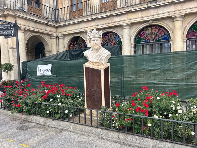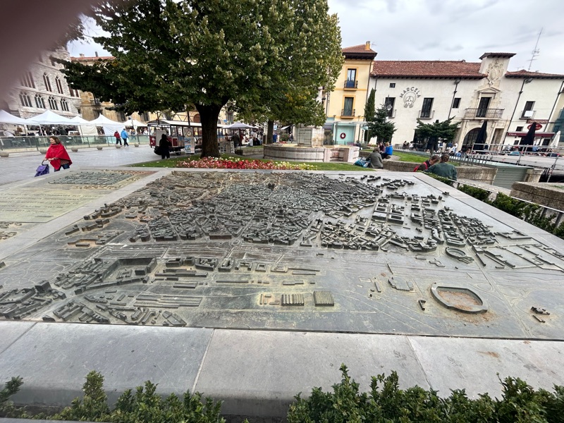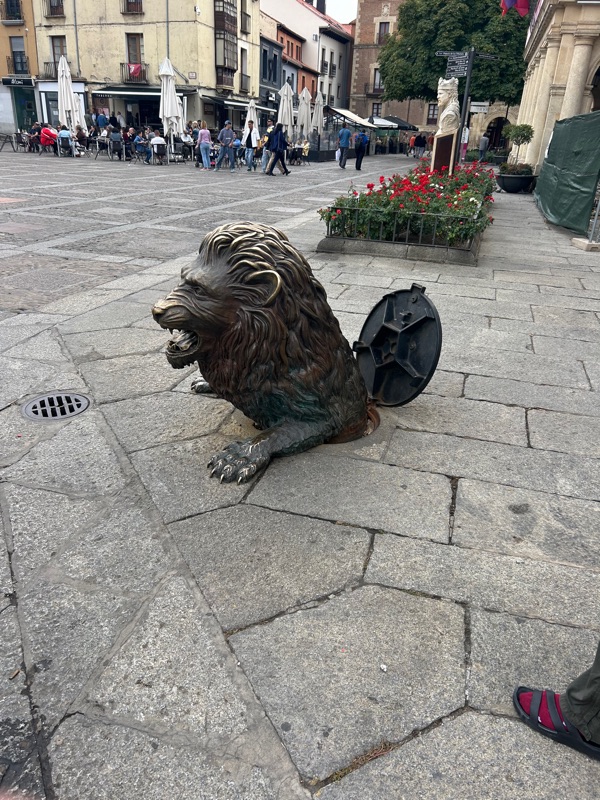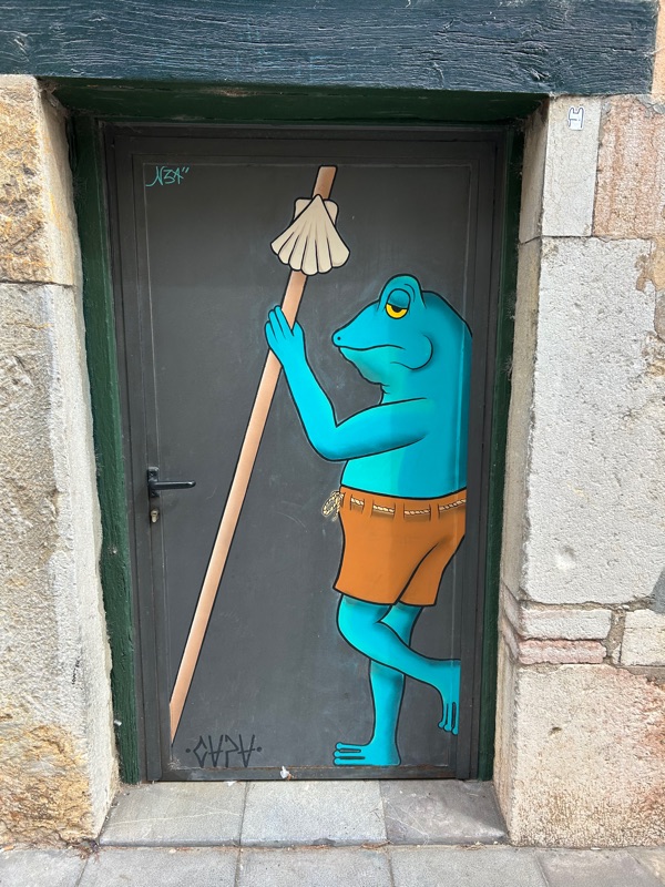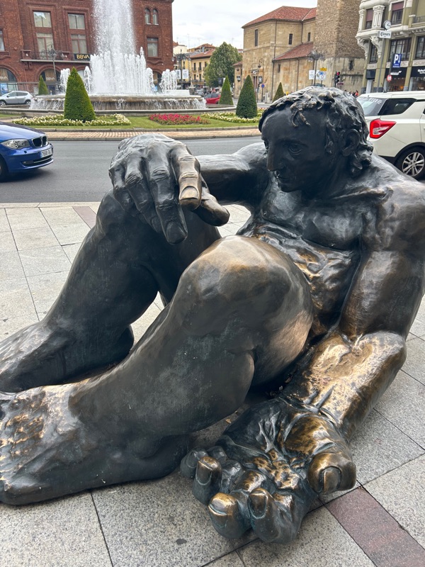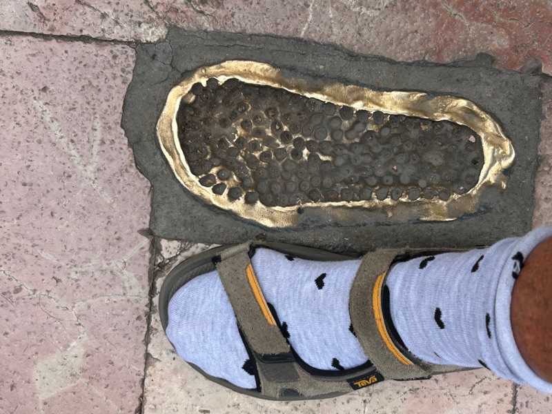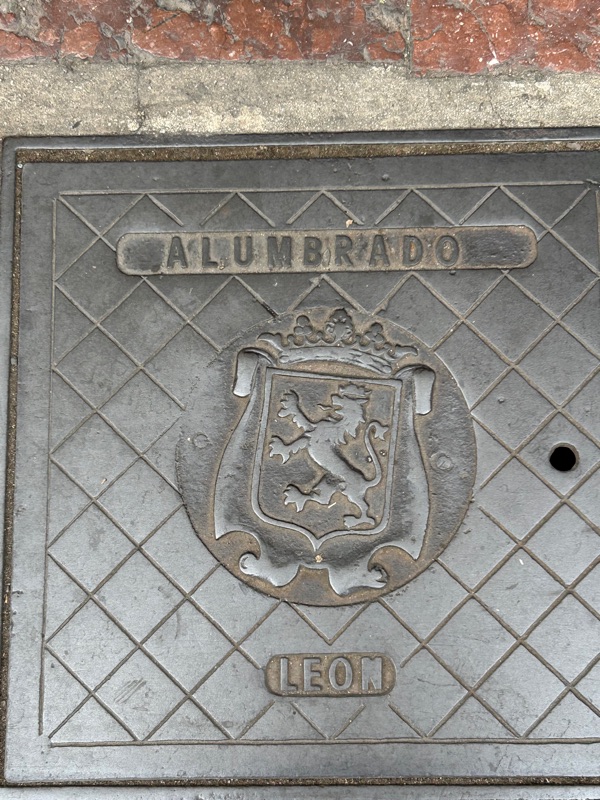 The left foot of the Roman legion. All along the streets here in Leon are ancient foot steps. Roman shoulders always marched starting with the left foot.