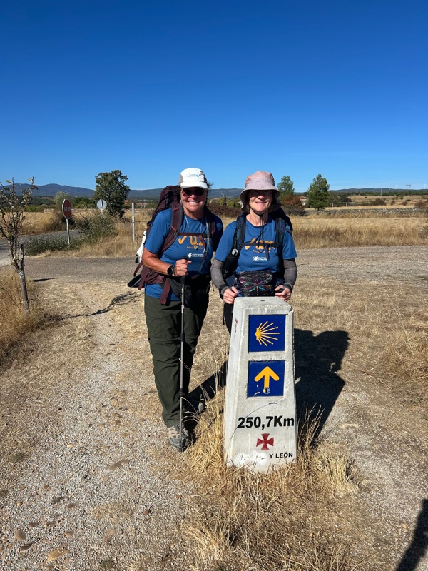 We are getting closer to Santiago every day. It’s rare we get pictures together but we walked today with Deb and she took this.