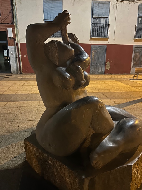 Some of the sculptures, cathedral and light effects we saw as we left town this morning.