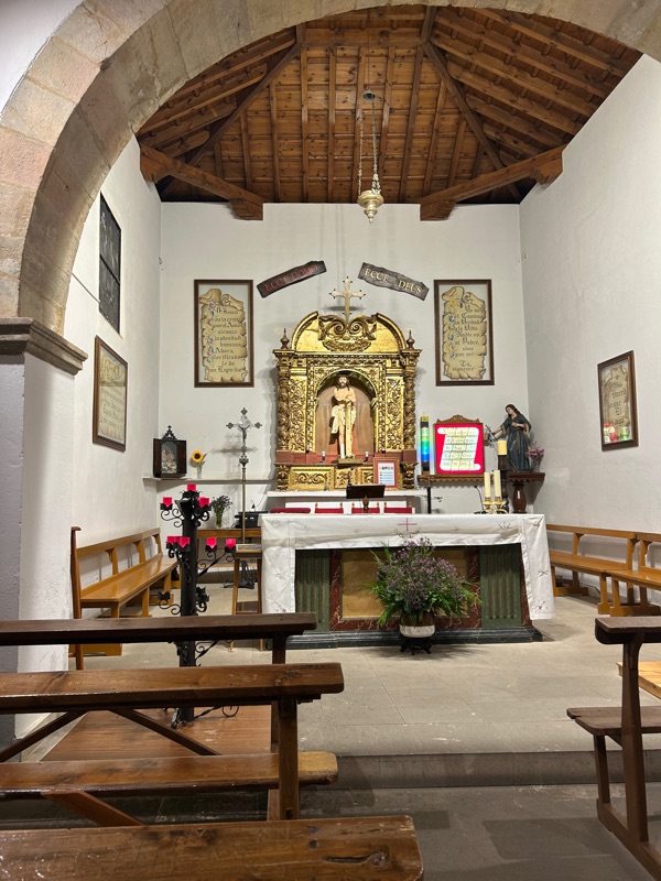 Just outside of Astorga we came across this lovely little chapel, Ermita de Ecco homo, we went in to warm up and get a stamp.