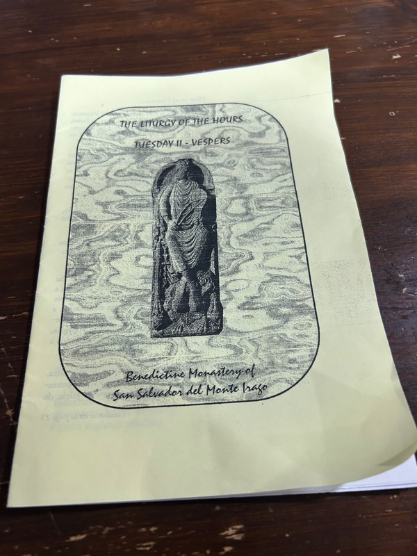 We went to Vespers tonight at the Iglisia de la Asunción. There were 10 brothers from the Monastery of Monte Irago who sang. They gave us a book so we could follow along.