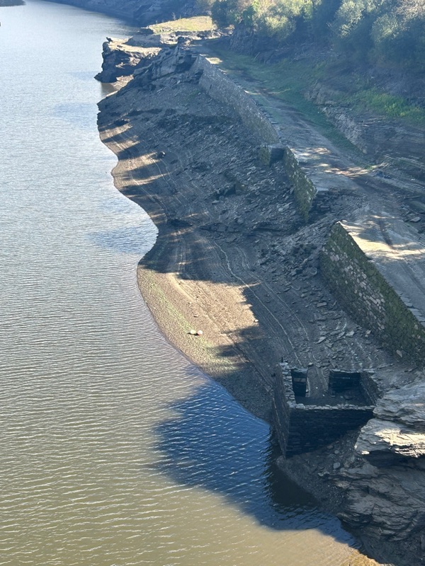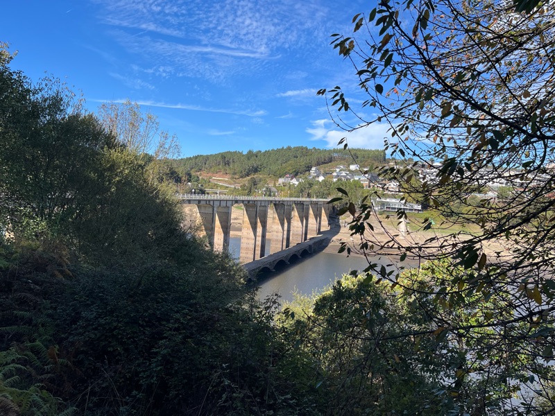 As you enter Portomarin you have to cross this long bridge and because of this seasons drought you can actually see the ancient ruins of the city that was flooded when the dam was built.