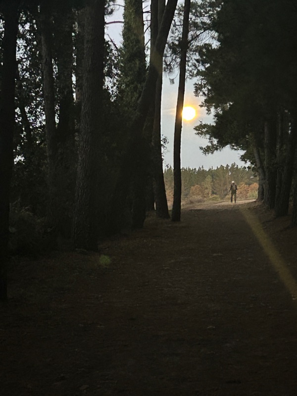 We left in the dark again today and were treated to a beautiful full moon as well as a lovely sunrise. Once again the trail was very busy with a huge increase in the number of pilgrims. We mostly walked through farm lands but there were also plenty of places to stop and get coffee and food.
